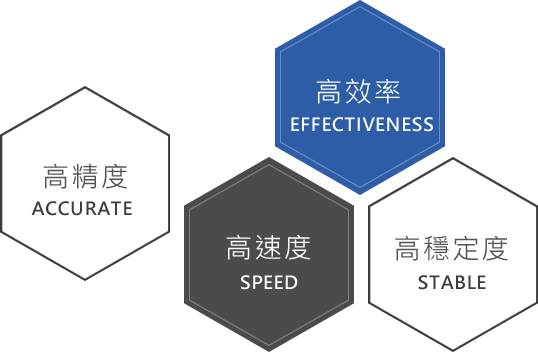 我們對機械的設計開發信念是提供高精度、高速度、高效率、高穩定可靠性及容易操作維護等優越特性的創新設備,能為客戶創造出高品質的產品,提高企業競爭力。無論就機械整體結構及外型、夾治具開發設計、電氣控制及油壓系統設計、零組件用料及加工、機械組立…等各方面都以最多元功能與高生產效率為考量,嚴謹開發賦於機台最佳化工藝效能。