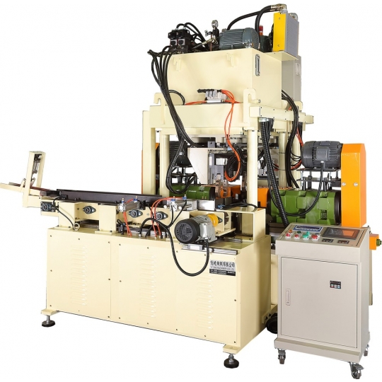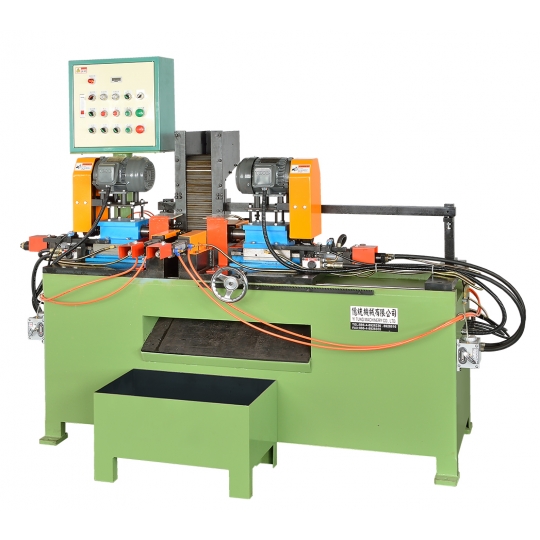YTC-500B-C自動雙頭倒角機結合秤重裝置,用於圓棒材長度100-500mm之車削與倒角加工作業 -