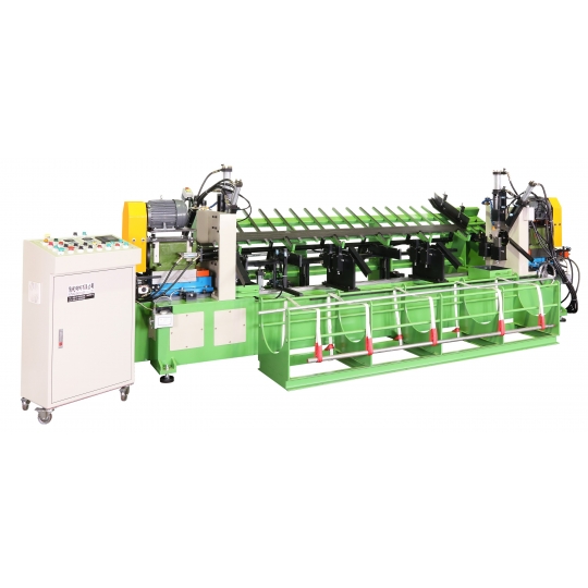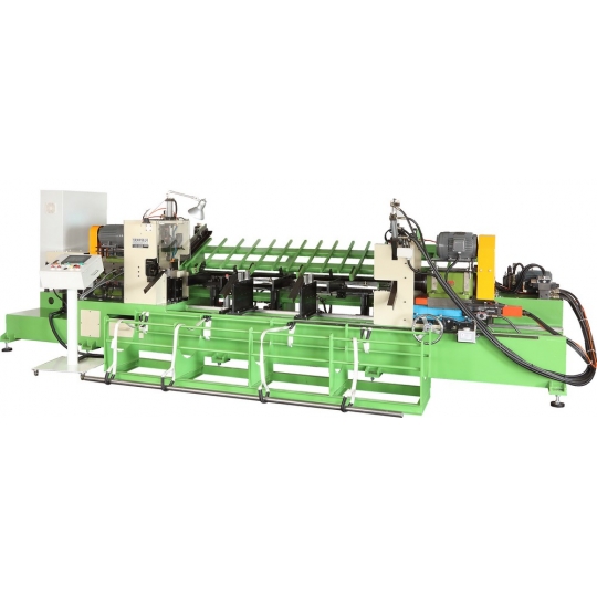 本機單邊以伺服控制,另一邊以油壓控制,可車修及倒角圓型、四角型,長度1000-3000mm之棒材加工作業